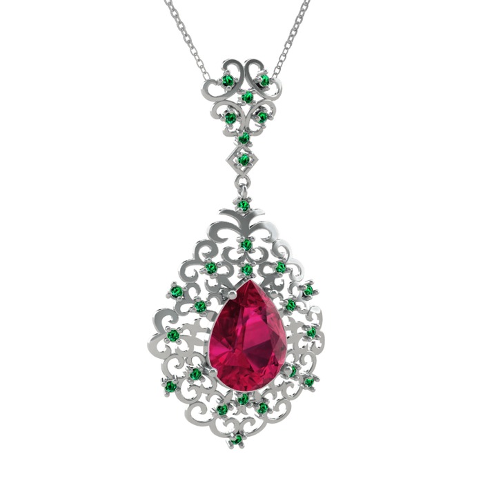 Rodolit garnet ve yeşil kuvars 14 ayar beyaz altın kolye (40 cm beyaz altın rolo zincir)