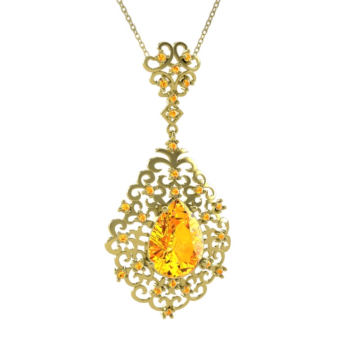 Sitrin 8 ayar altın kolye (40 cm gümüş rolo zincir)