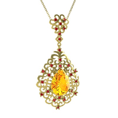 Sitrin ve garnet 8 ayar altın kolye (40 cm altın rolo zincir)