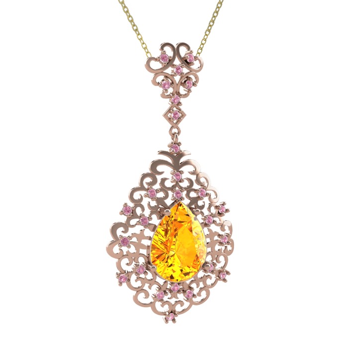 Sitrin ve pembe kuvars 8 ayar rose altın kolye (40 cm altın rolo zincir)