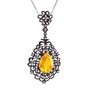 Sitrin ve pembe kuvars 925 ayar siyah rodyum kaplama gümüş kolye (40 cm beyaz altın rolo zincir)