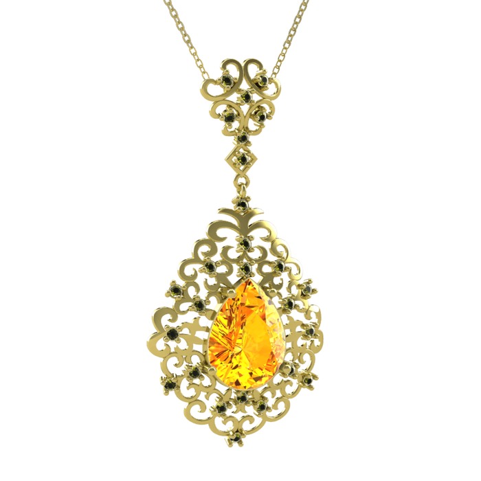Sitrin ve peridot 925 ayar altın kaplama gümüş kolye (40 cm altın rolo zincir)