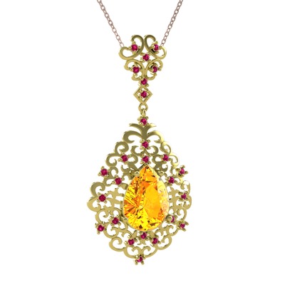 Sitrin ve rodolit garnet 14 ayar altın kolye (40 cm rose altın rolo zincir)