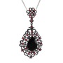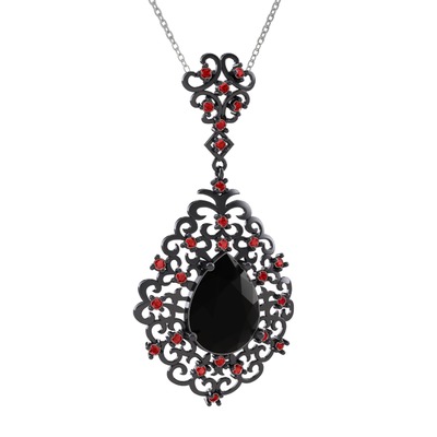 Siyah zirkon ve garnet 925 ayar siyah rodyum kaplama gümüş kolye (40 cm beyaz altın rolo zincir)