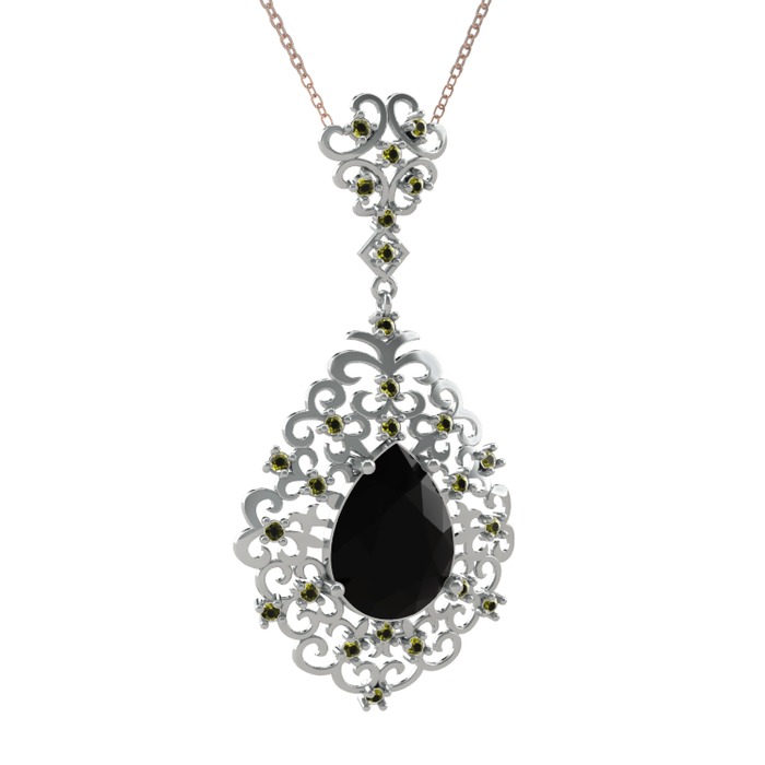 Siyah zirkon ve peridot 14 ayar beyaz altın kolye (40 cm rose altın rolo zincir)