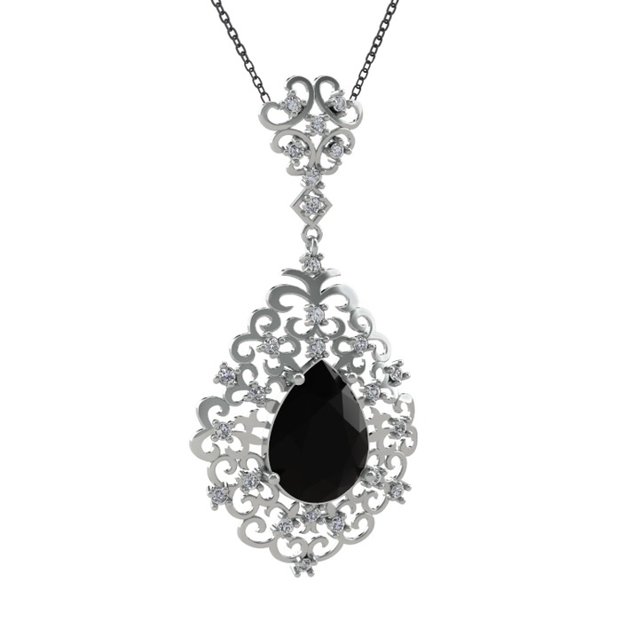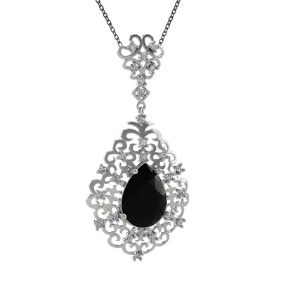 Siyah zirkon ve swarovski 8 ayar beyaz altın kolye (40 cm gümüş rolo zincir)