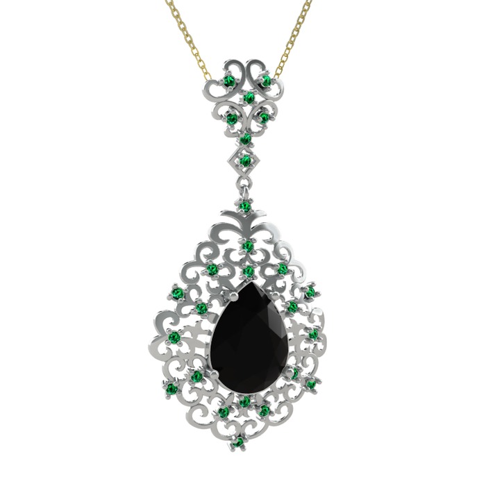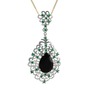 Siyah zirkon ve yeşil kuvars 8 ayar beyaz altın kolye (40 cm altın rolo zincir)