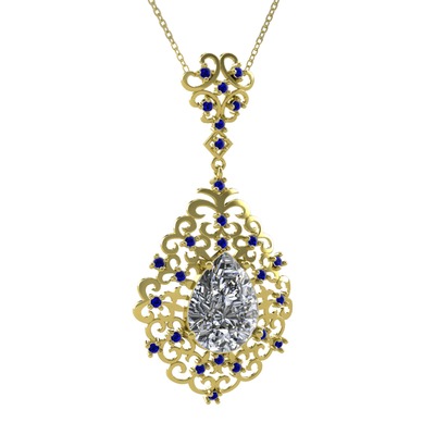 Swarovski ve lab safir 8 ayar altın kolye (40 cm altın rolo zincir)