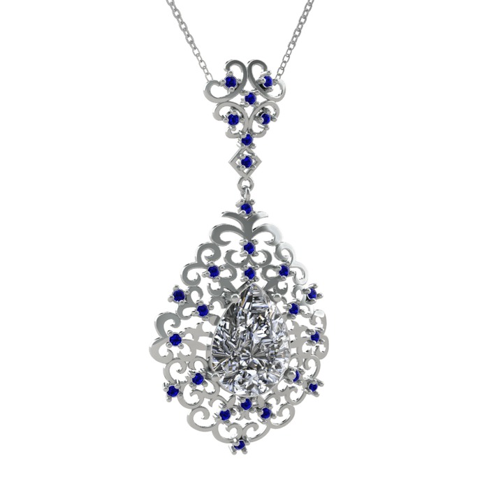 Swarovski ve lab safir 8 ayar beyaz altın kolye (40 cm beyaz altın rolo zincir)