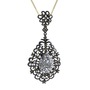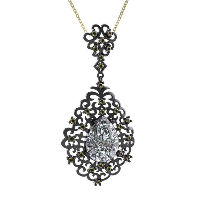 Swarovski ve peridot 925 ayar siyah rodyum kaplama gümüş kolye (40 cm altın rolo zincir)