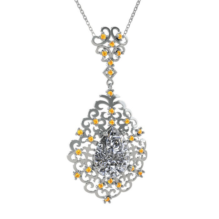 Swarovski ve sitrin 18 ayar beyaz altın kolye (40 cm beyaz altın rolo zincir)