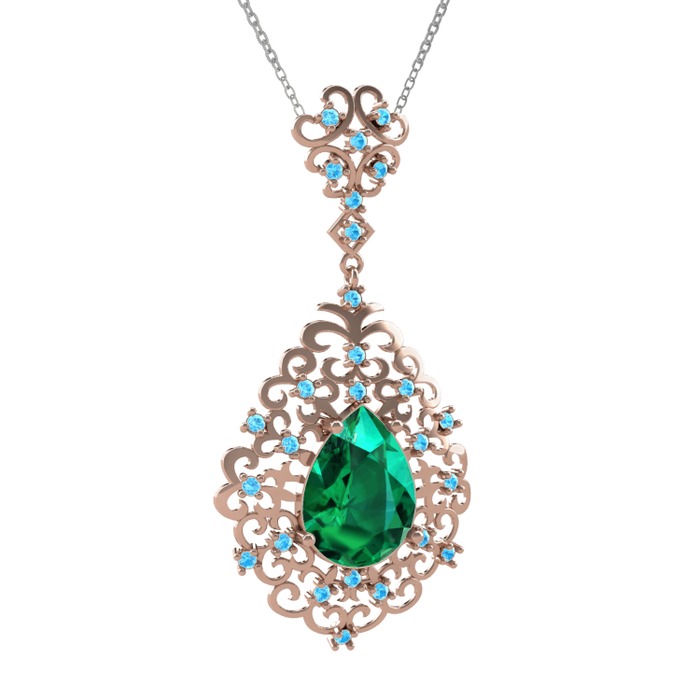 Yeşil kuvars ve akuamarin 18 ayar rose altın kolye (40 cm beyaz altın rolo zincir)