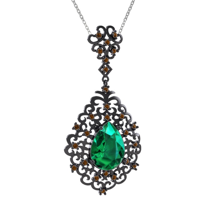 Yeşil kuvars ve dumanlı kuvars 925 ayar siyah rodyum kaplama gümüş kolye (40 cm beyaz altın rolo zincir)