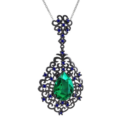 Yeşil kuvars ve lab safir 925 ayar siyah rodyum kaplama gümüş kolye (40 cm gümüş rolo zincir)