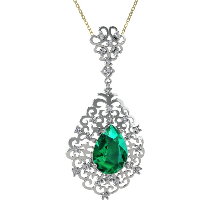 Yeşil kuvars ve pırlanta 8 ayar beyaz altın kolye (0.52 karat, 40 cm altın rolo zincir)