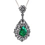 Yeşil kuvars ve pırlanta 925 ayar siyah rodyum kaplama gümüş kolye (0.52 karat, 40 cm rose altın rolo zincir)