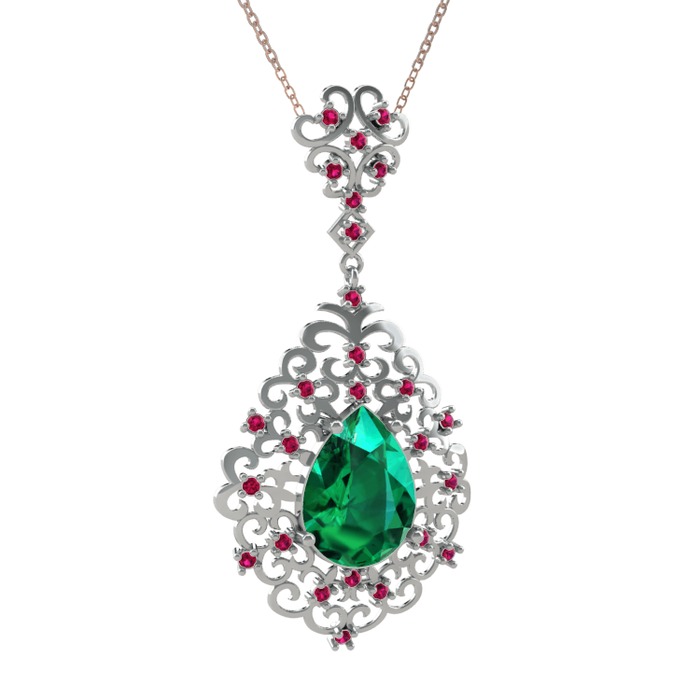 Yeşil kuvars ve rodolit garnet 925 ayar gümüş kolye (40 cm rose altın rolo zincir)