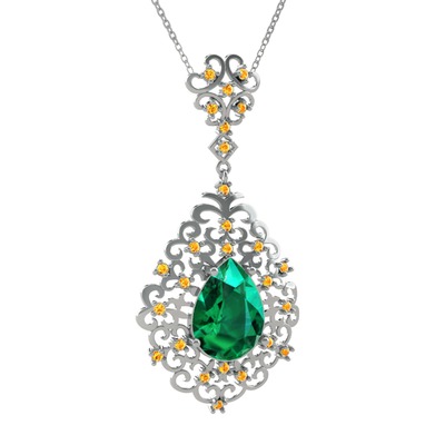 Yeşil kuvars ve sitrin 18 ayar beyaz altın kolye (40 cm beyaz altın rolo zincir)