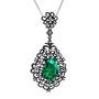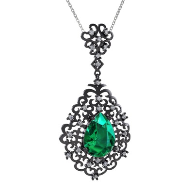 Yeşil kuvars ve swarovski 925 ayar siyah rodyum kaplama gümüş kolye (40 cm beyaz altın rolo zincir)