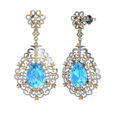 Akuamarin ve sitrin 14 ayar beyaz altın küpe