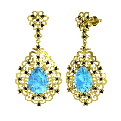 Akuamarin ve siyah zirkon 925 ayar altın kaplama gümüş küpe