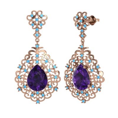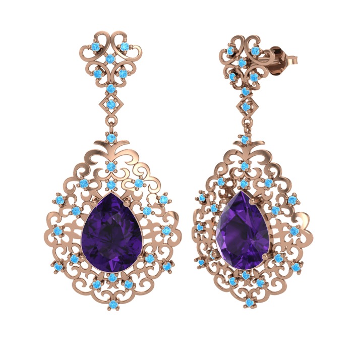 Ametist ve akuamarin 8 ayar rose altın küpe