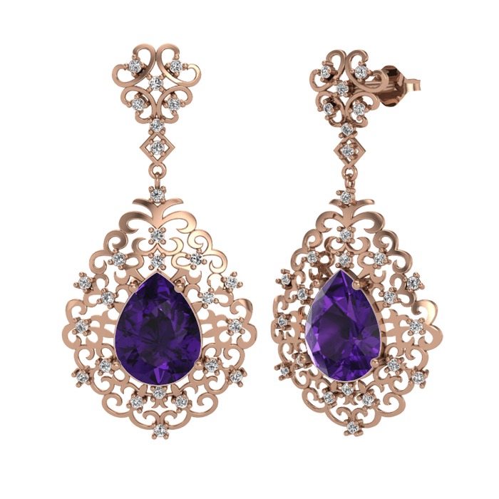 Ametist ve beyaz zirkon 14 ayar rose altın küpe