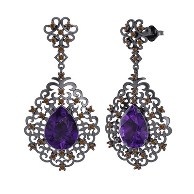 Ametist ve dumanlı kuvars 925 ayar siyah rodyum kaplama gümüş küpe