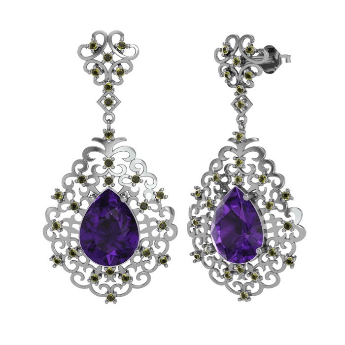 Ametist ve peridot 925 ayar gümüş küpe