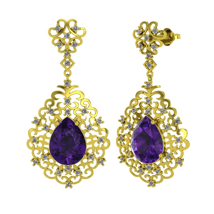 Ametist ve pırlanta 18 ayar altın küpe (1.04 karat)