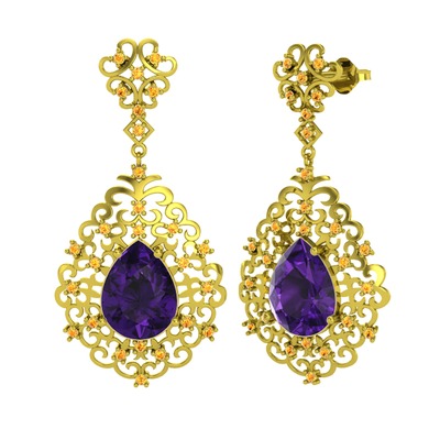 Ametist ve sitrin 925 ayar altın kaplama gümüş küpe
