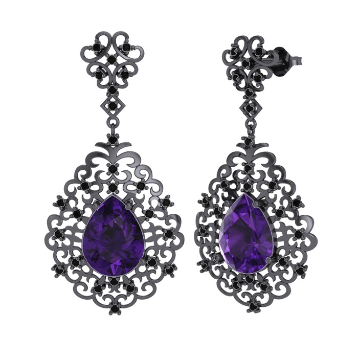 Ametist ve siyah zirkon 925 ayar siyah rodyum kaplama gümüş küpe