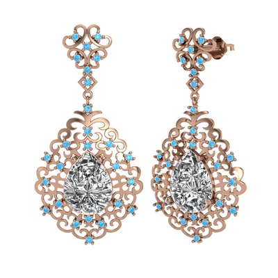 Beyaz zirkon ve akuamarin 925 ayar rose altın kaplama gümüş küpe