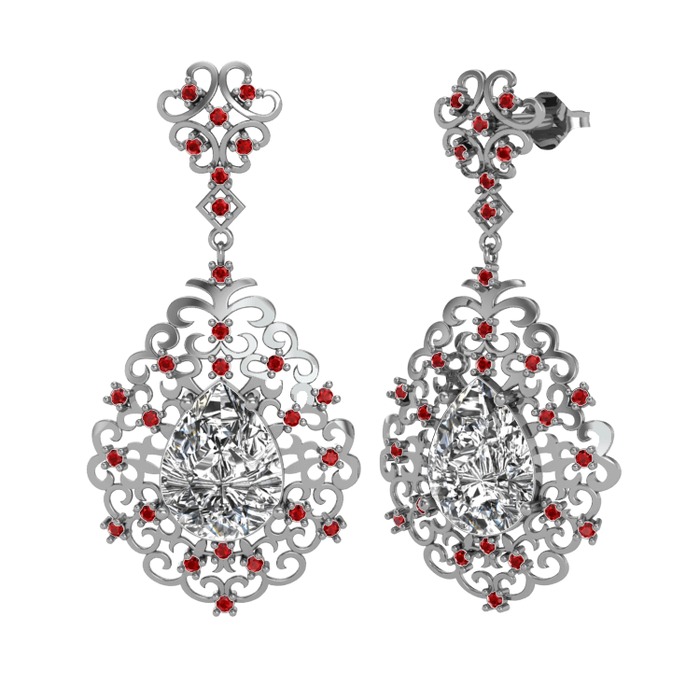 Beyaz zirkon ve garnet 14 ayar beyaz altın küpe