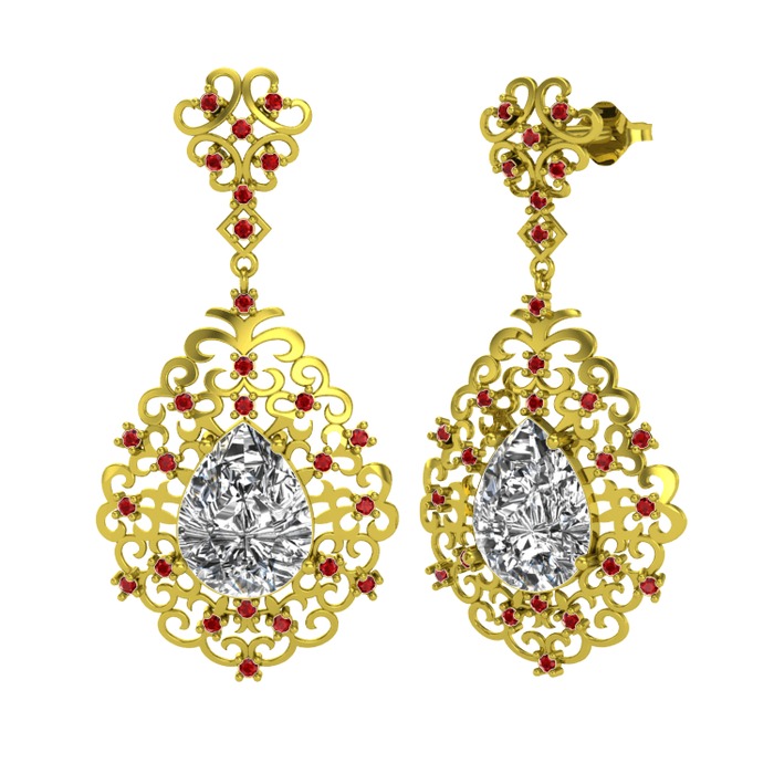 Beyaz zirkon ve garnet 18 ayar altın küpe