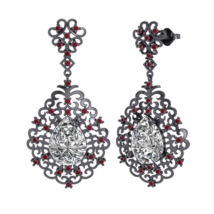 Beyaz zirkon ve kök yakut 925 ayar siyah rodyum kaplama gümüş küpe