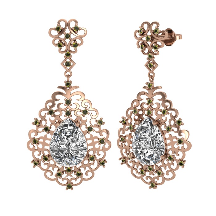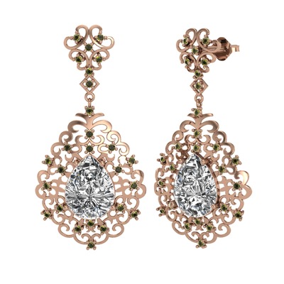 Beyaz zirkon ve peridot 925 ayar rose altın kaplama gümüş küpe
