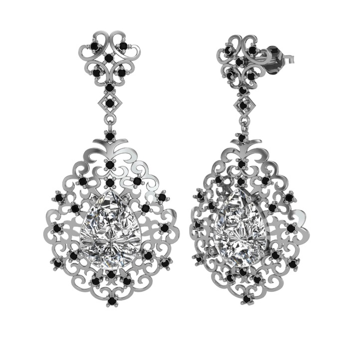 Beyaz zirkon ve siyah zirkon 14 ayar beyaz altın küpe