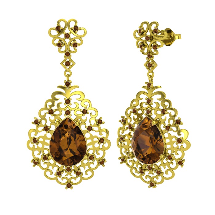 Dumanlı kuvars 925 ayar altın kaplama gümüş küpe