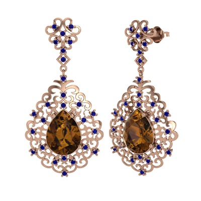 Dumanlı kuvars ve lab safir 8 ayar rose altın küpe