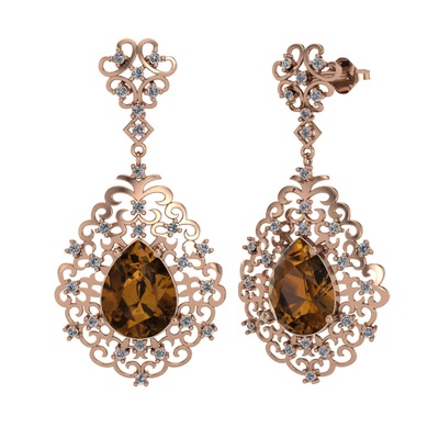 Dumanlı kuvars ve pırlanta 14 ayar rose altın küpe (1.04 karat)