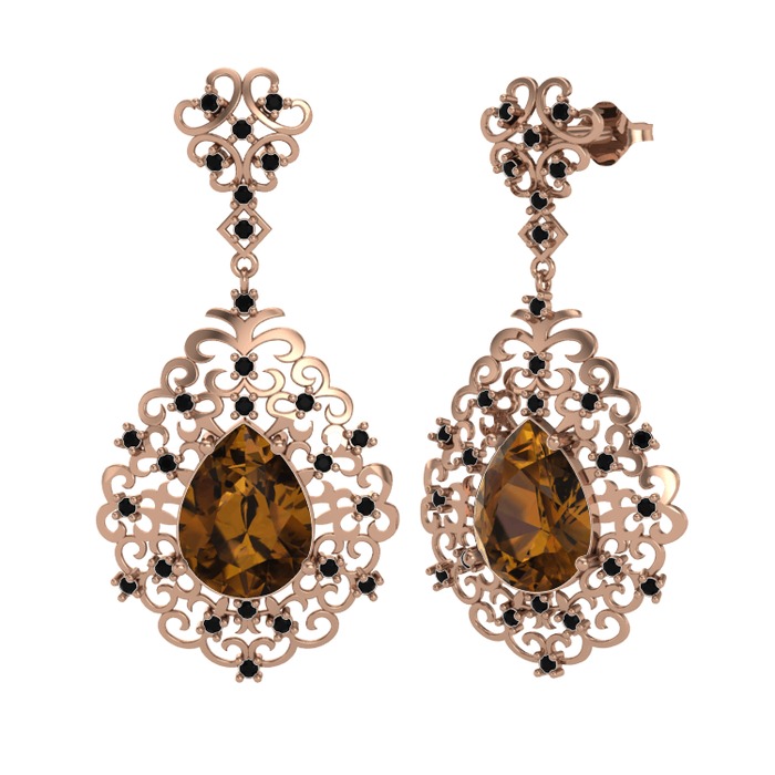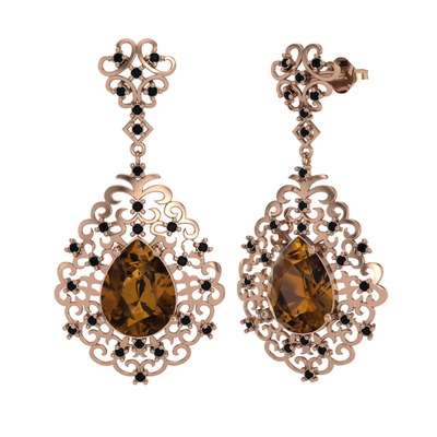 Dumanlı kuvars ve siyah zirkon 925 ayar rose altın kaplama gümüş küpe