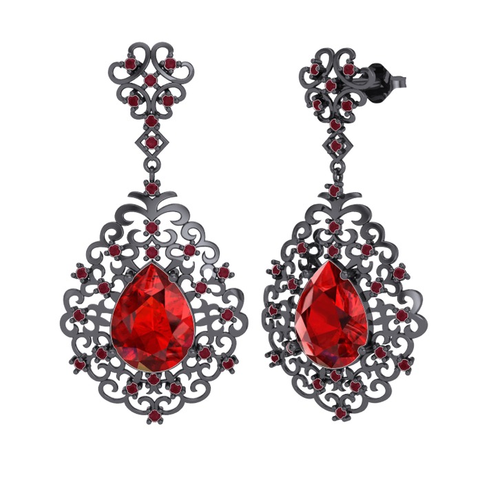 Garnet ve kök yakut 925 ayar siyah rodyum kaplama gümüş küpe