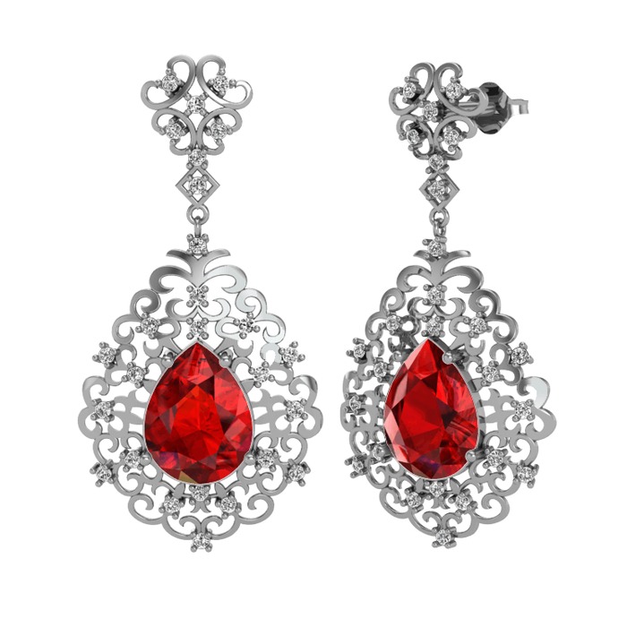 Garnet ve swarovski 8 ayar beyaz altın küpe