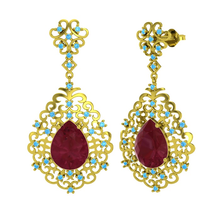 Kök yakut ve akuamarin 14 ayar altın küpe