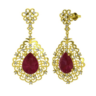 Kök yakut ve beyaz zirkon 18 ayar altın küpe