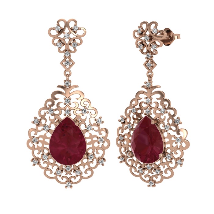 Kök yakut ve beyaz zirkon 8 ayar rose altın küpe