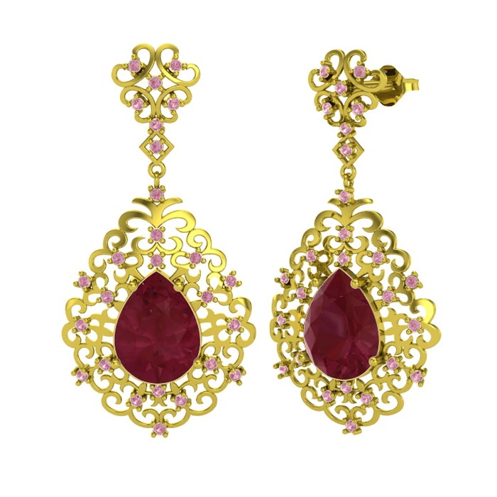 Kök yakut ve pembe kuvars 8 ayar altın küpe