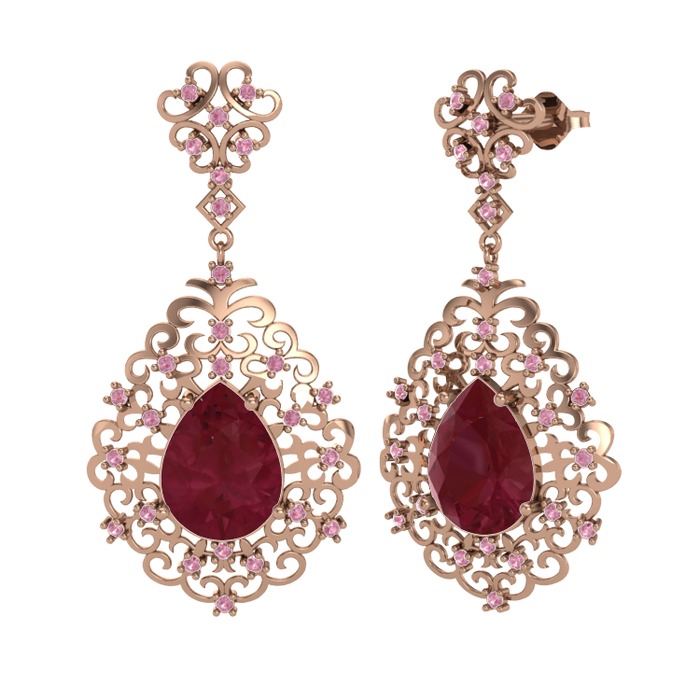Kök yakut ve pembe kuvars 8 ayar rose altın küpe