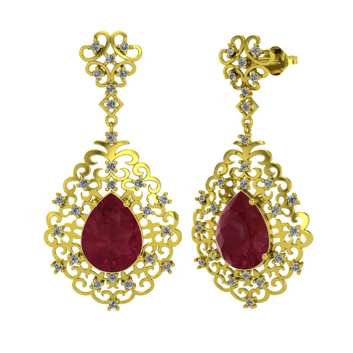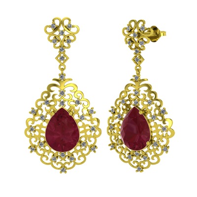 Kök yakut ve pırlanta 18 ayar altın küpe (1.04 karat)